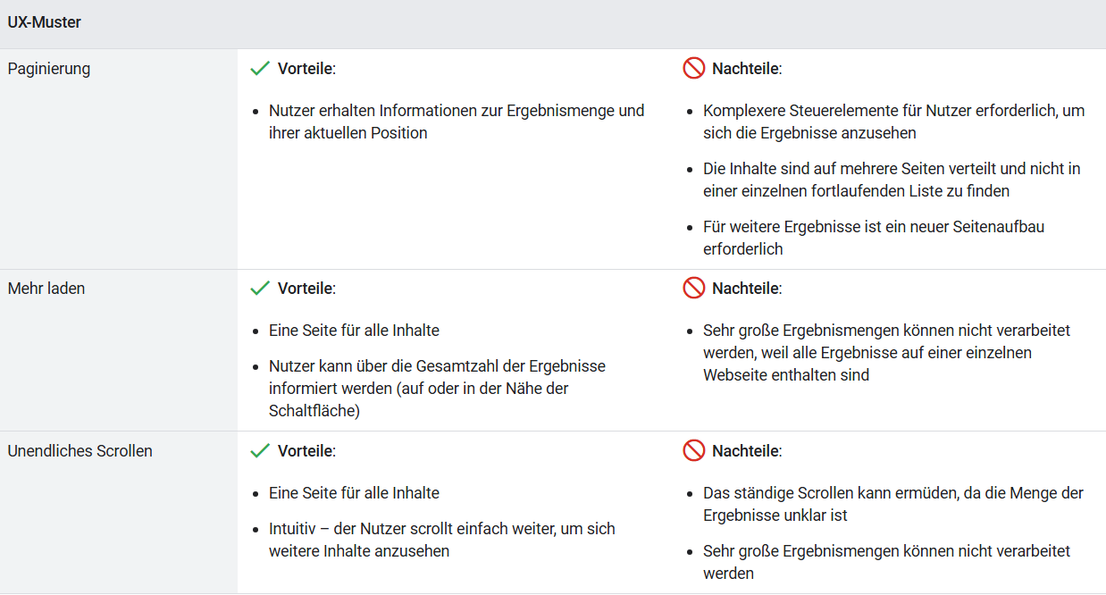 Wenn du nur einen Teil einer längeren Liste anzeigen lassen möchtest, kannst du aus verschiedenen UX-Mustern wählen: