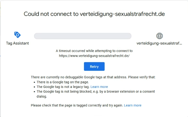 Stand Februar 2024 kommt das vor. Wirklich zuverlässig scheint das Tool nur zu sein, wenn man Google Chrome als Browser verwendet und zusätzlich die Erweiterung “Tag Assistant Companion” installiert hat.