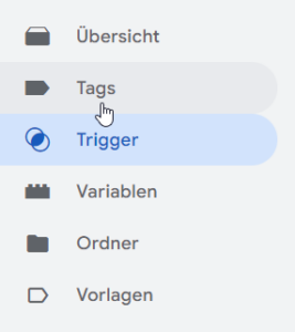- wenn das Ereignis eintritt, werden Informationen vom Trigger weitergeleitet und das Tag ausgelöst (deshalb muss jedem Tag mindestens ein Trigger zugeordnet werden)