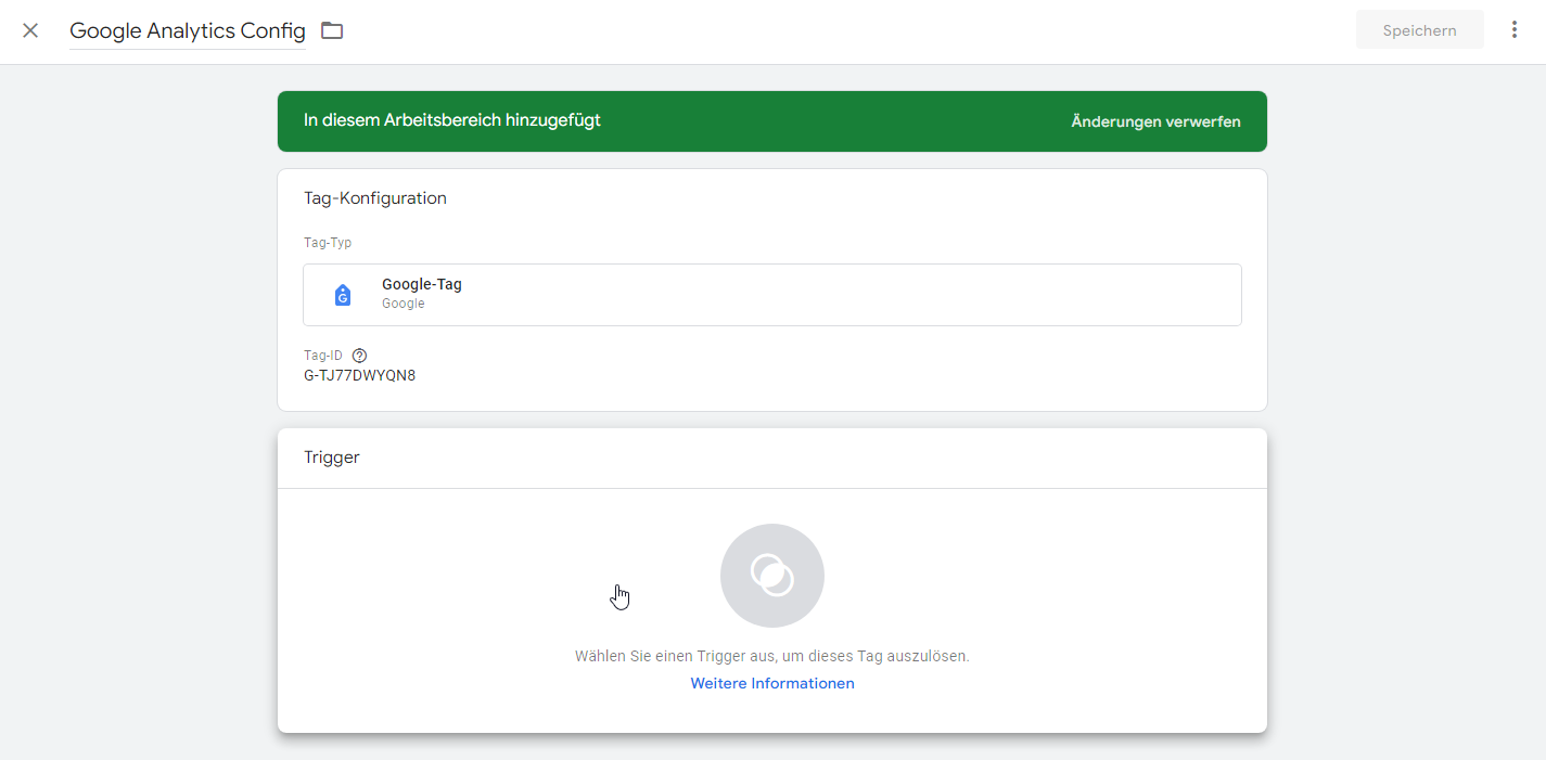 - im Feld “Tag ID” die Google Tag ID aus der Analytics-Property einfügen