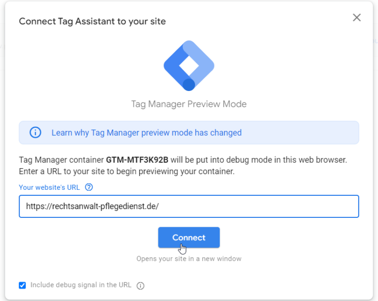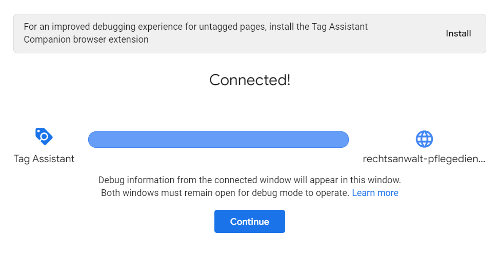 - Google Tag Assistant verknüpft sich mit der Website