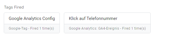- wenn Tag ausgelöst wurde, taucht das Tag im sich geöffneten Tag Assistant unter “Tags Fired” auf