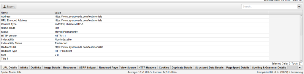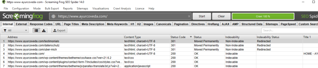 Für die Auflistung kann man die entsprechenden Elemente im Screaming Frog übrigens auch markieren und copy-pasten 🙂