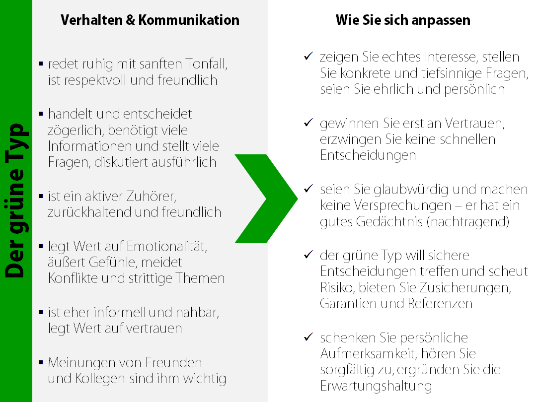 Wie gehe ich mit Kunden um, die dem grünen Persönlichkeitstyp entsprechen? Ein Fallbeispiel.
